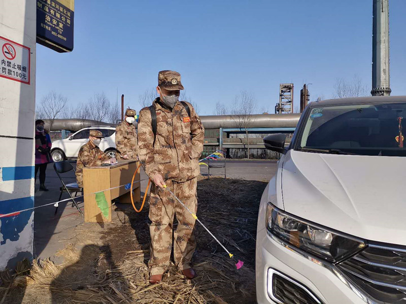 “請(qǐng)靠邊停車,我們需要給車輛消毒,請(qǐng)您下車做詳細(xì)登記并測(cè)量體溫?!?1點(diǎn)半不是上下班時(shí)間,雖然偶有人車進(jìn)出,但郗余亮?xí)r刻堅(jiān)守在刺骨的寒風(fēng)中,檢查過(guò)往人員和車輛,嚴(yán)格執(zhí)行公司對(duì)新冠肺炎疫情防控的各項(xiàng)要求?!耙咔楫?dāng)前,我作為公司員工,又是民兵,有責(zé)任也有義務(wù)沖鋒在前保護(hù)全廠員工和企業(yè)的安全,為了早日戰(zhàn)勝疫情,再苦再累我都能克服?!臂嗔琳f(shuō)。